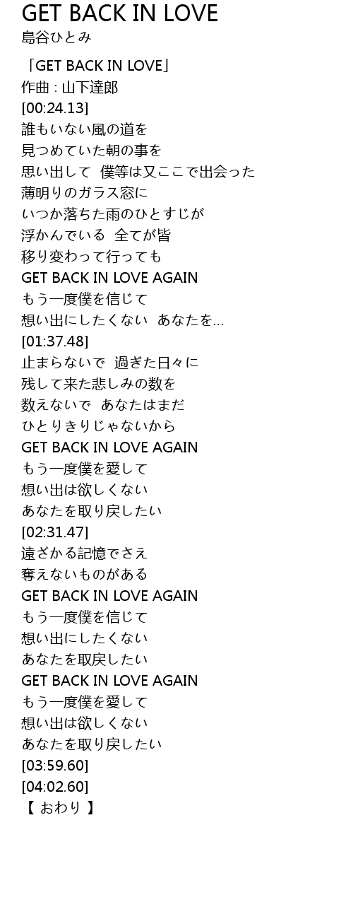 | [00:01.13] | 「GET BACK IN LOVE」 |