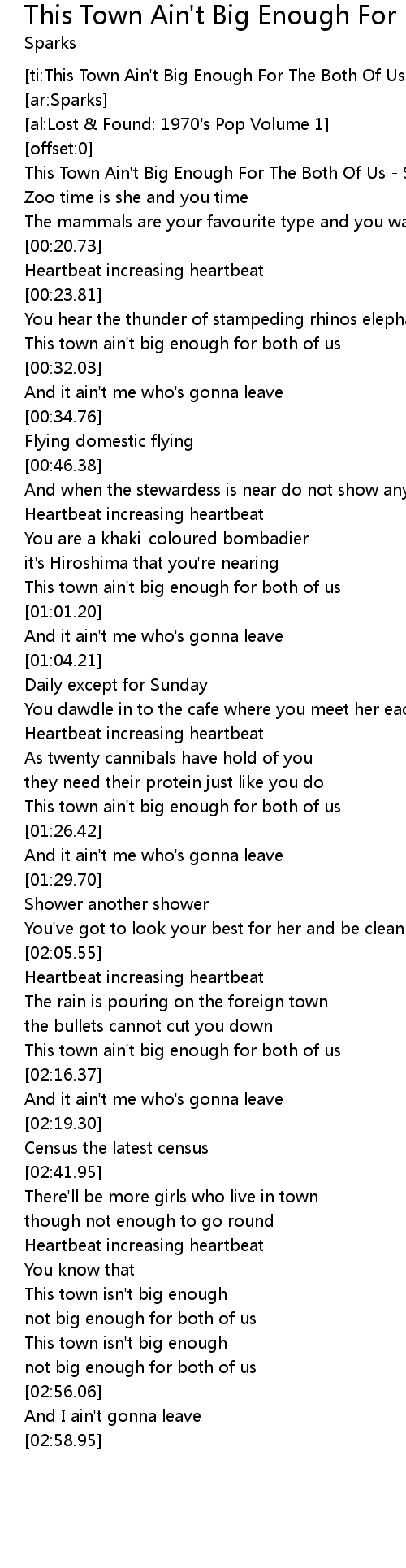 [00:01.27] This Town Ain't Big Enough For The Both Of Us - Sparks