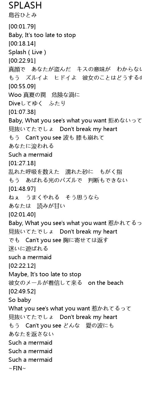 | [02:59.03] | もう Can't you see どんな 愛の波にも |