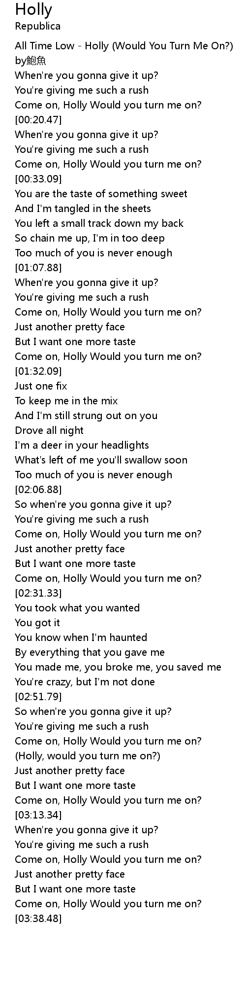 | [00:00.57] | All Time Low - Holly (Would You Turn Me On?) |