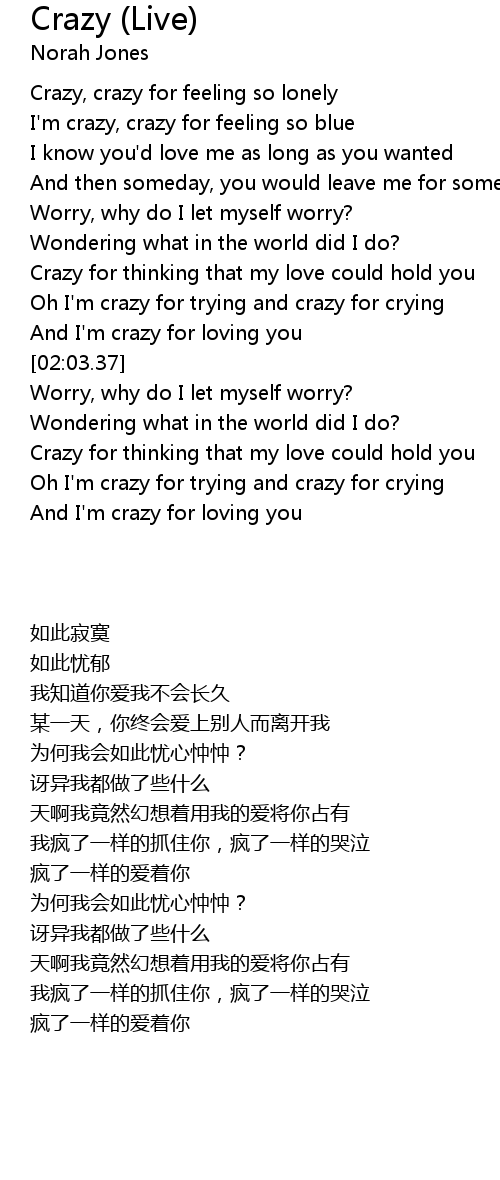 Oh I'm crazy for trying and crazy for crying |