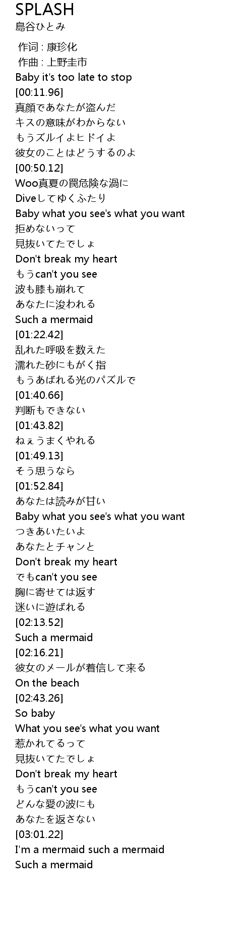 | [01:20.14] | Such a mermaid |