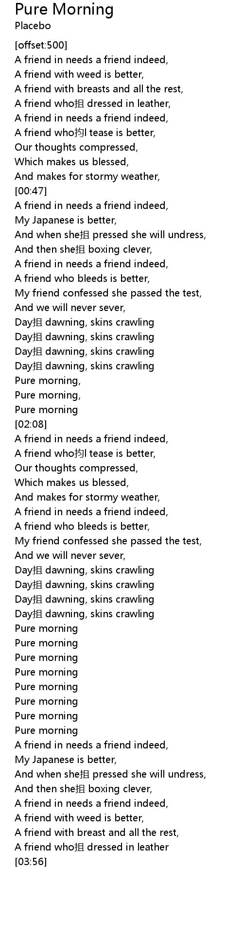 | [01:58] | Pure morning, |