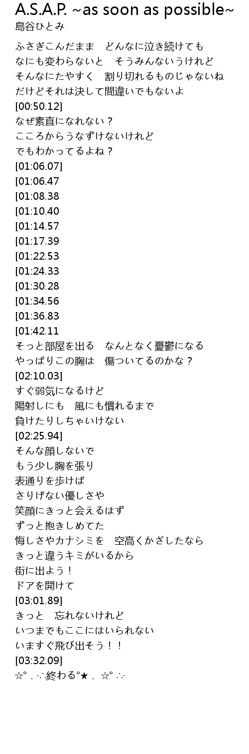 | Song | A.S.A.P. ~as soon as possible~ |