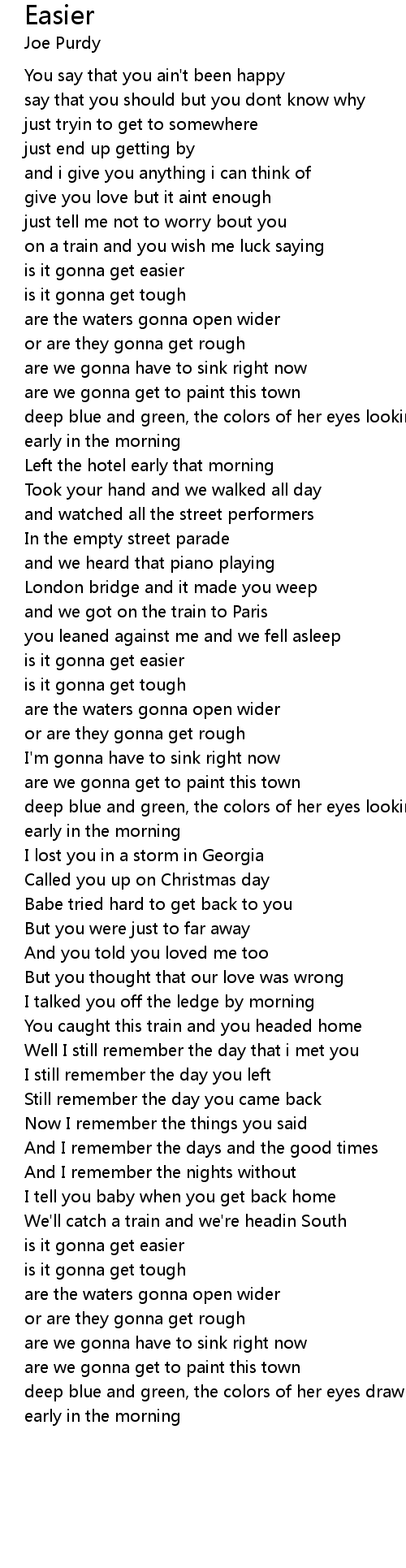 is it gonna get easier |