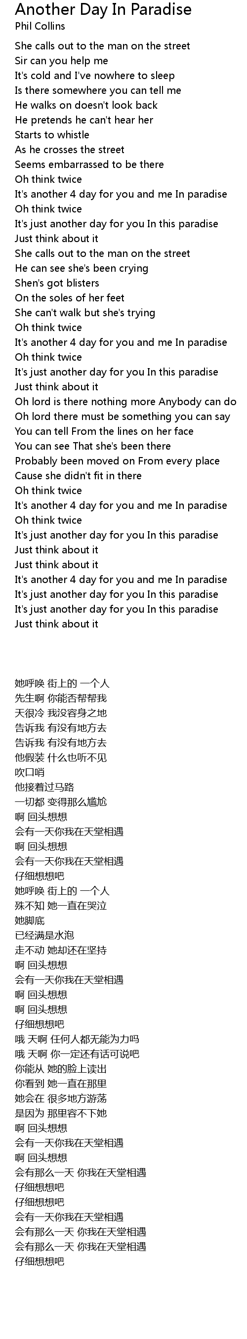 Song Another Day In Paradise
