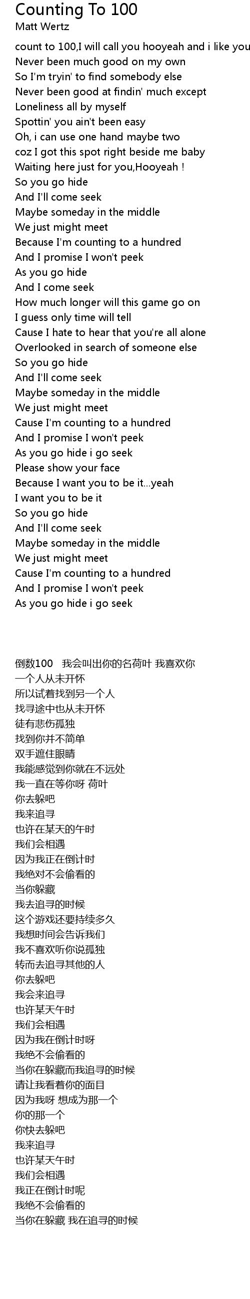 | [00:02.28] | count to 100, I will call you hooyeah and i like you |
