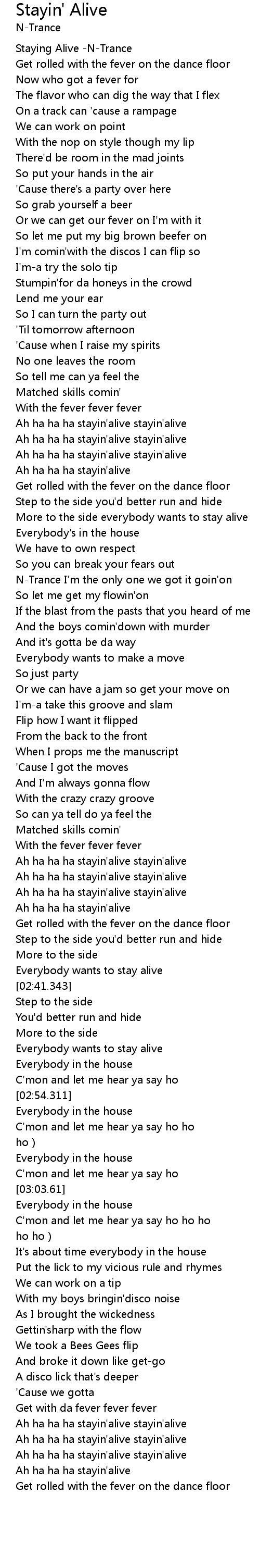 | [03:40.136] | Ah ha ha ha stayin' alive |