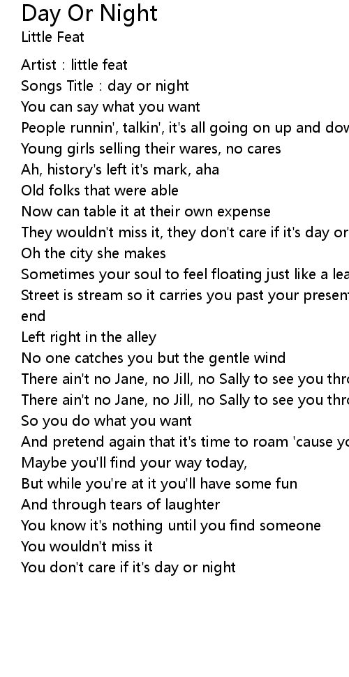 | You don' t care if it' s day or night |