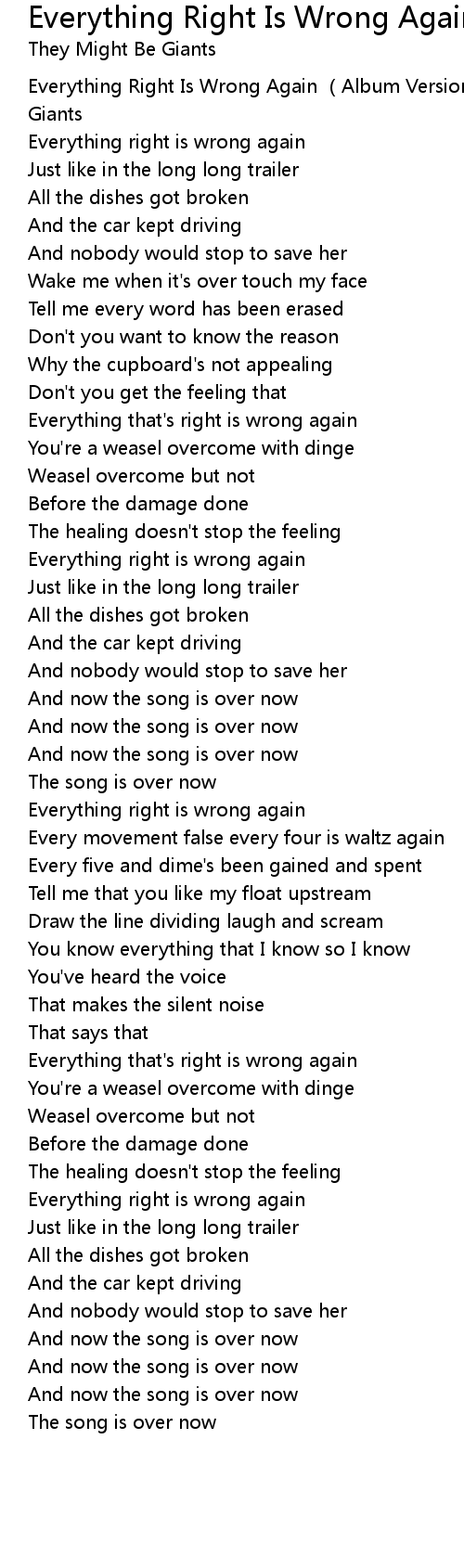 | [00:00.580] | Everything Right Is Wrong Again Album Version They Might Be Giants |