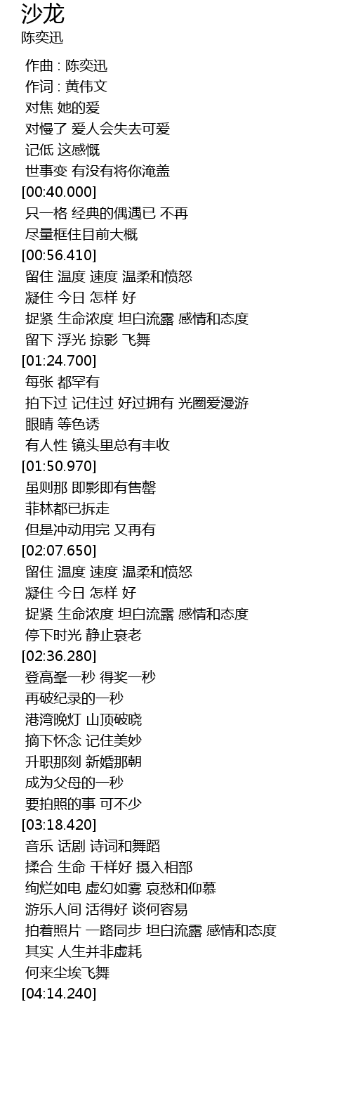 | [03:46.970] | 拍着照片 一路同步 坦白流露 感情和态度 |