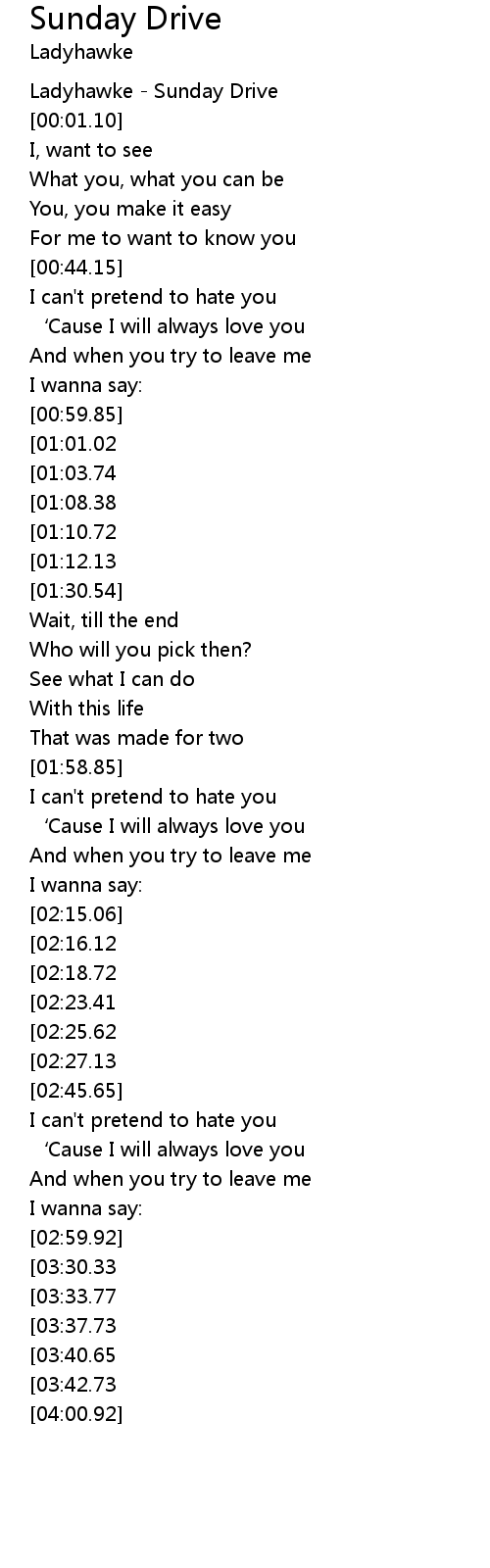 | [00:00.00] | Ladyhawke - Sunday Drive |
