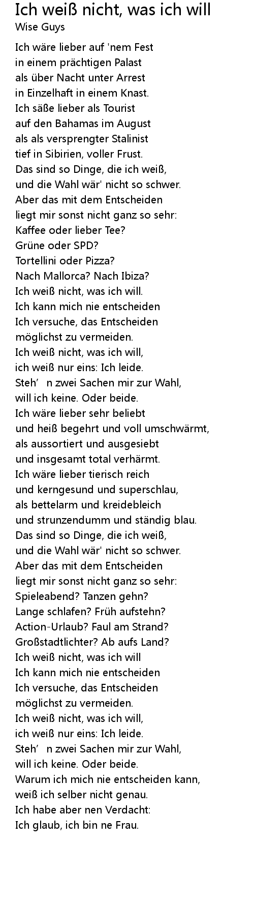 | Song | Ich weiß nicht, was ich will |