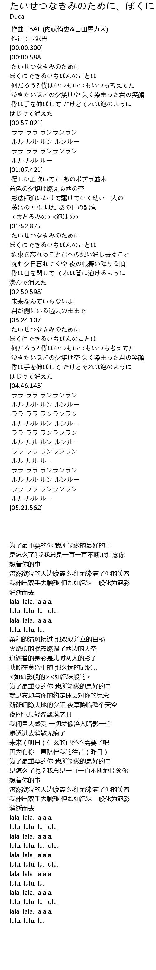 | [00:01.002] | たいせつなきみのために ぼくにできるいちばんのことは |