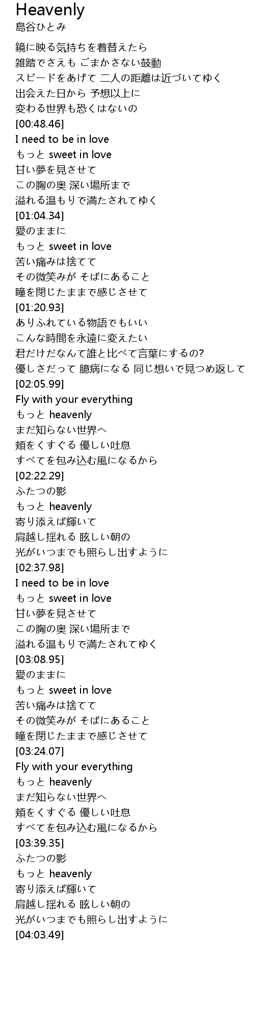 | [03:40.91] | もっと heavenly |