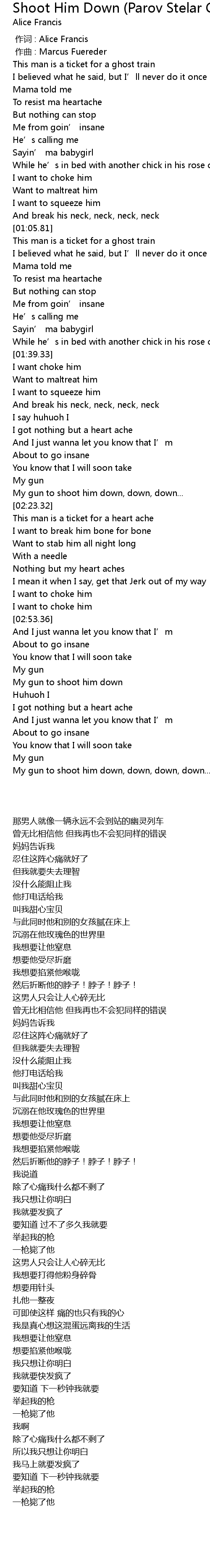 | [02:01.56] | My gun to shoot him down, down, down... |