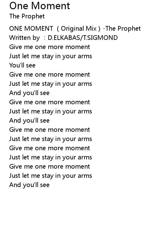 | [00:00.323] | ONE MOMENT (Original Mix)-The Prophet |