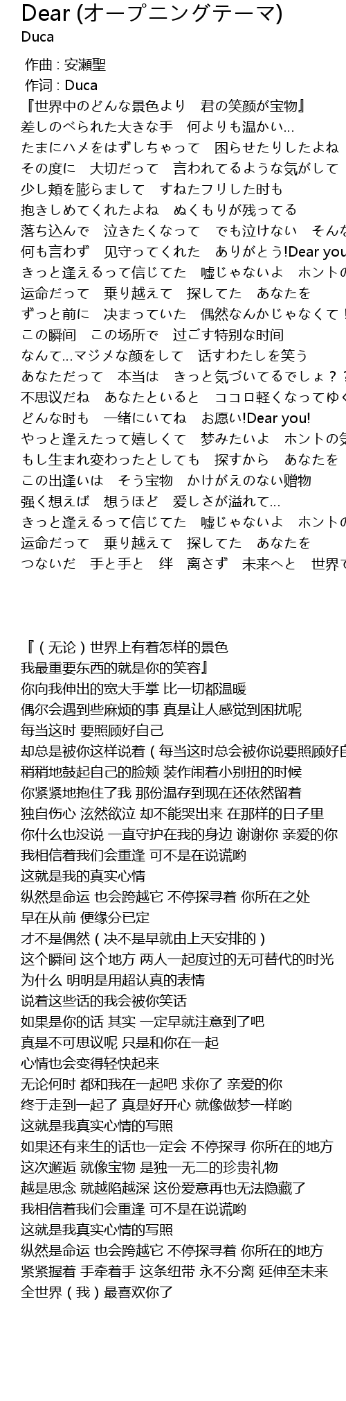 | [02:10.19] | どんな时も 一绪にいてね お愿い!Dear you! |