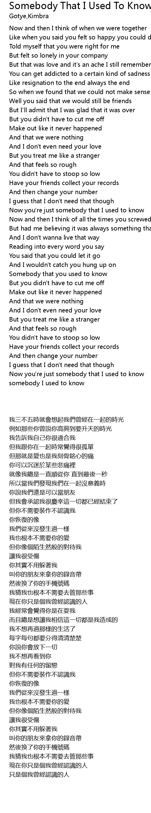 | [03:33.200] | somebody I used to know |