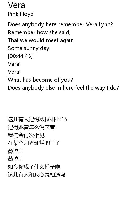 | [00:22.31] | Does anybody here remember Vera Lynn? |