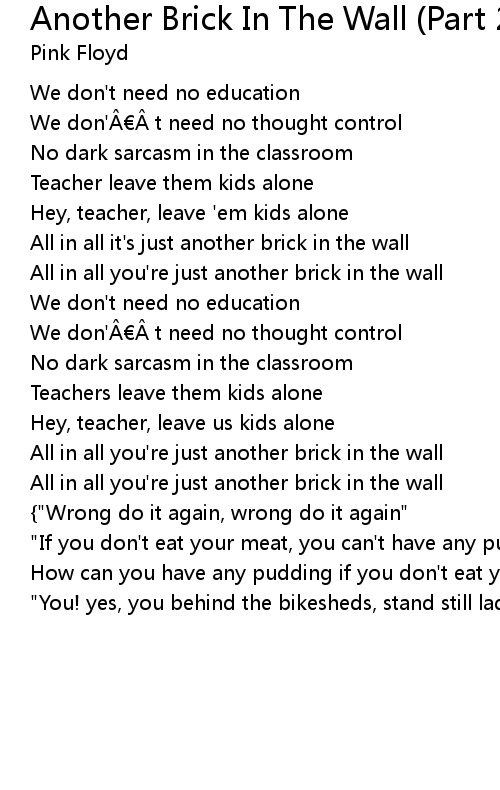 | Song | Another Brick In The Wall (Part 2) |