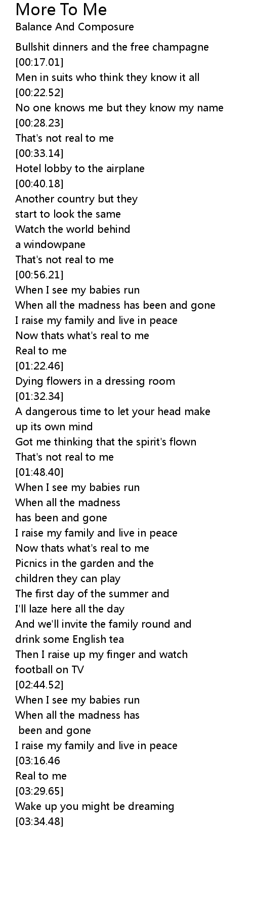 Now thats what's real to me |