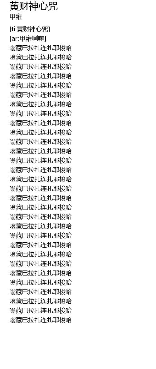 | [01:08.00] | 嗡藏巴拉扎连扎耶梭哈 |