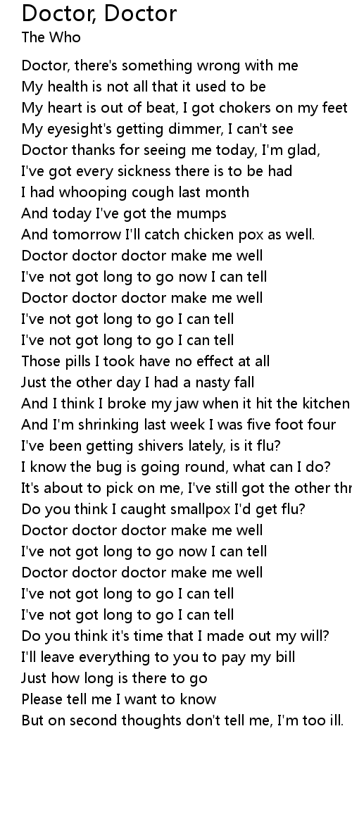 Doctor doctor doctor make me well |