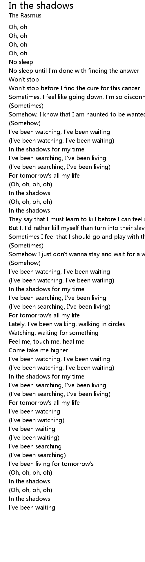 In the shadows for my time |