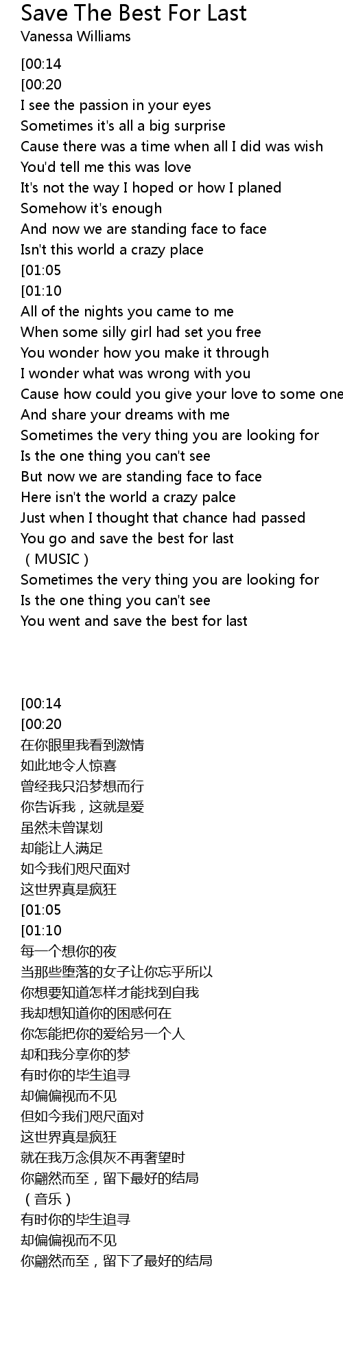 | Song | Save The Best For Last |