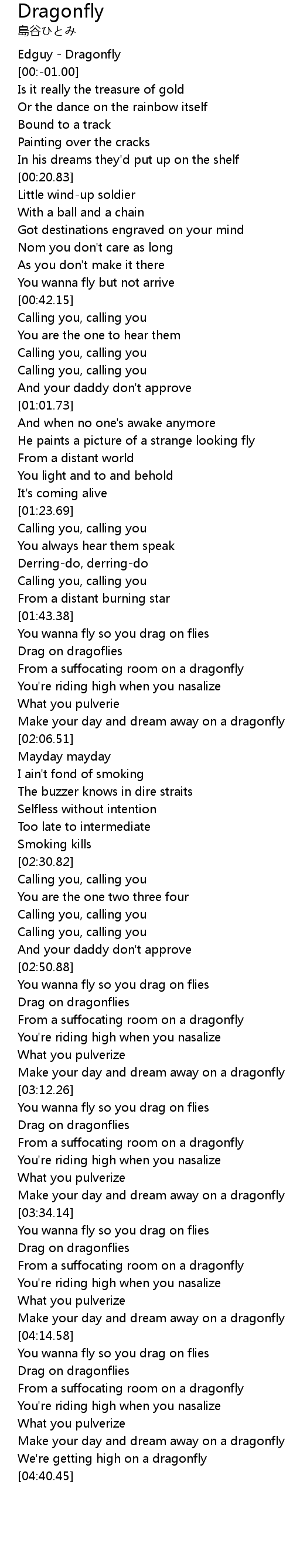| [02:55.86] | Drag on dragonflies |