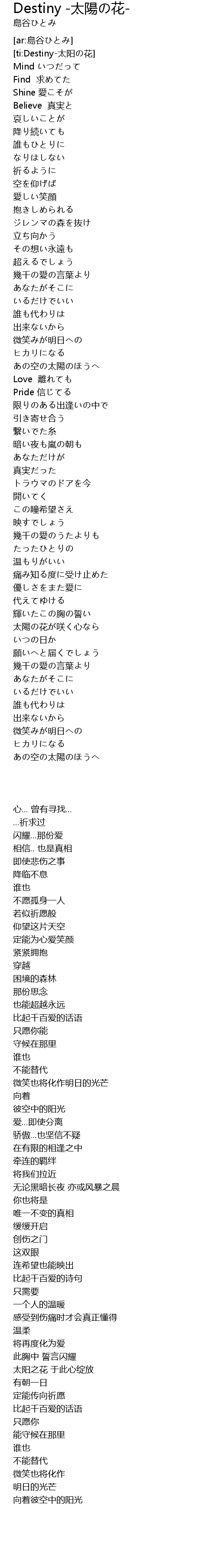 | Album | Destiny-太阳の花-/恋水-tears of love- |
