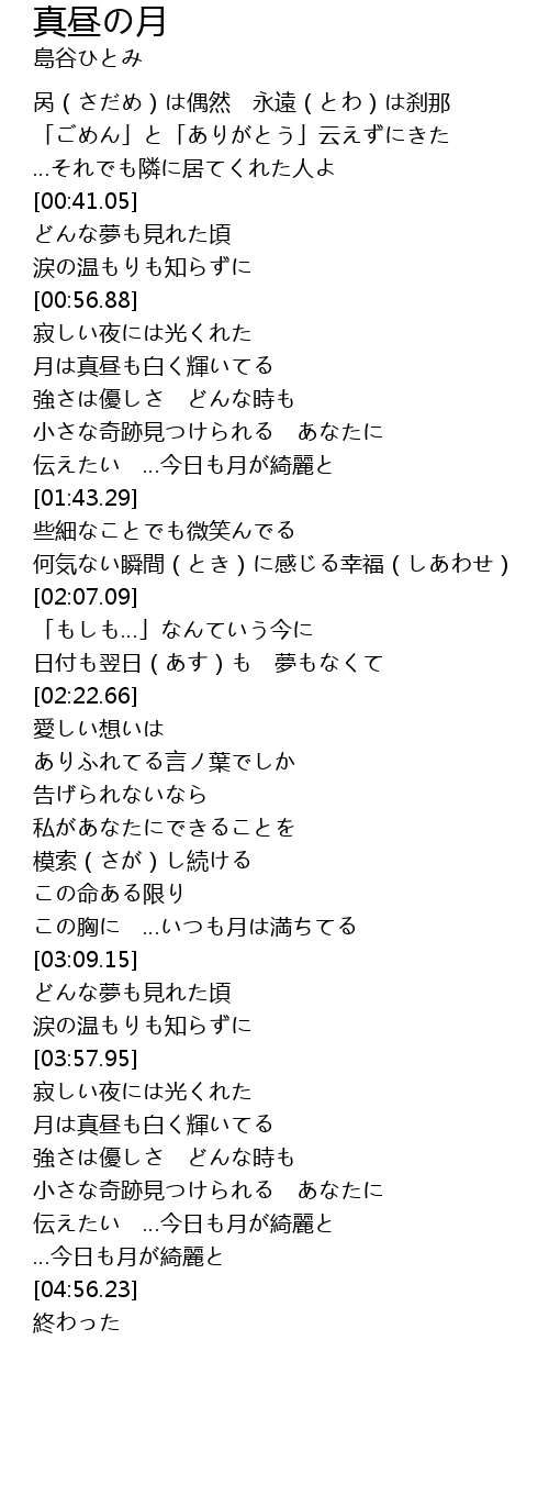 | [04:09.43] | 月は真昼も白く輝いてる |