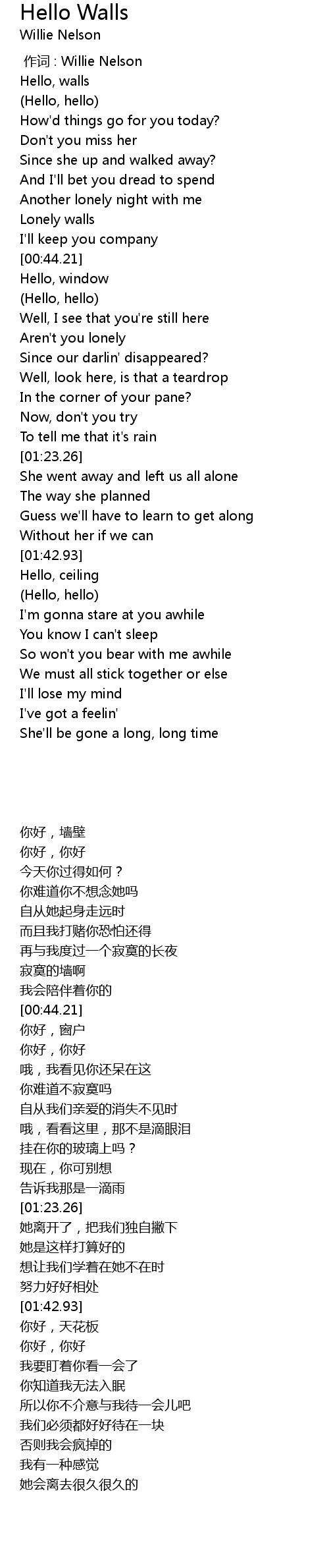 | [00:09.20] | Hello, walls |