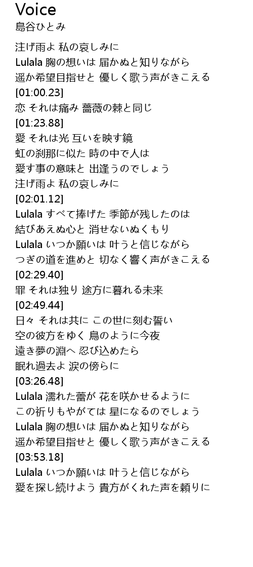 | [03:39.63] | Lulala 胸の想いは 届かぬと知りながら |