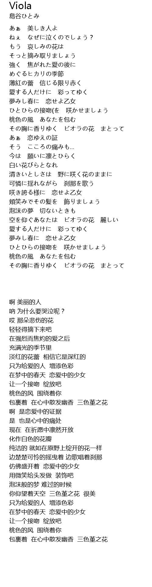 | [01:46.390] | その胸に香りゆく ビオラの花 まとって |