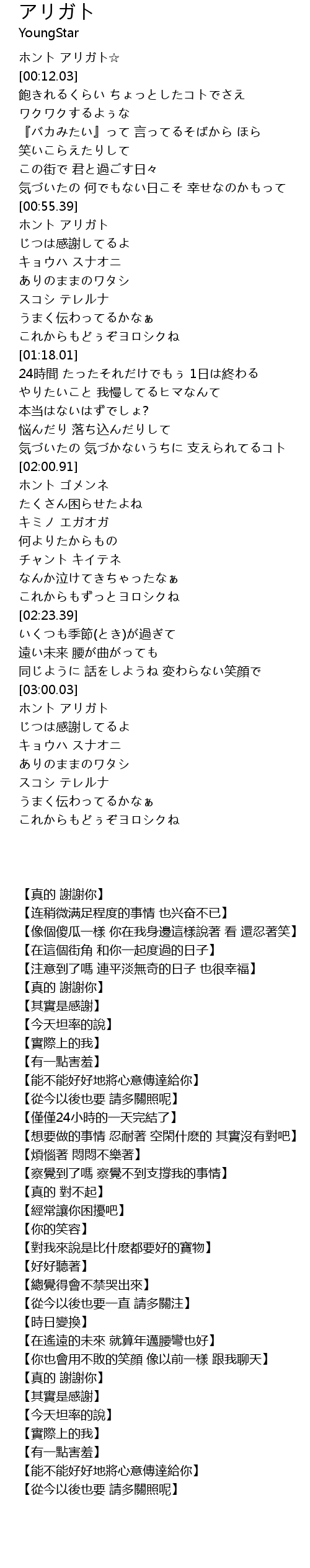 | [01:50.94] | 気づいたの 気づかないうちに 支えられてるコト |