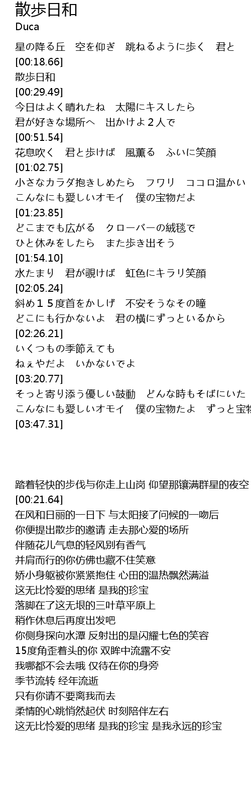| [00:51.99] | 花息吹く 君と歩けば 風薫る ふいに笑顔 |