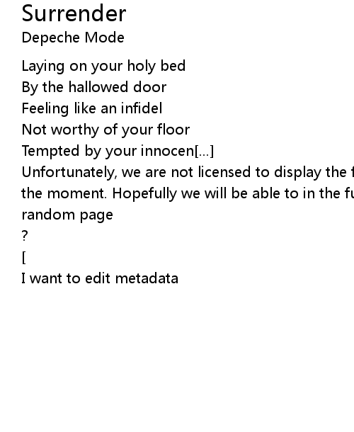 | Unfortunately, we are not licensed to display the full lyrics for this song at the moment. Hopefully we will be able to in the future. Until then, how about a | |