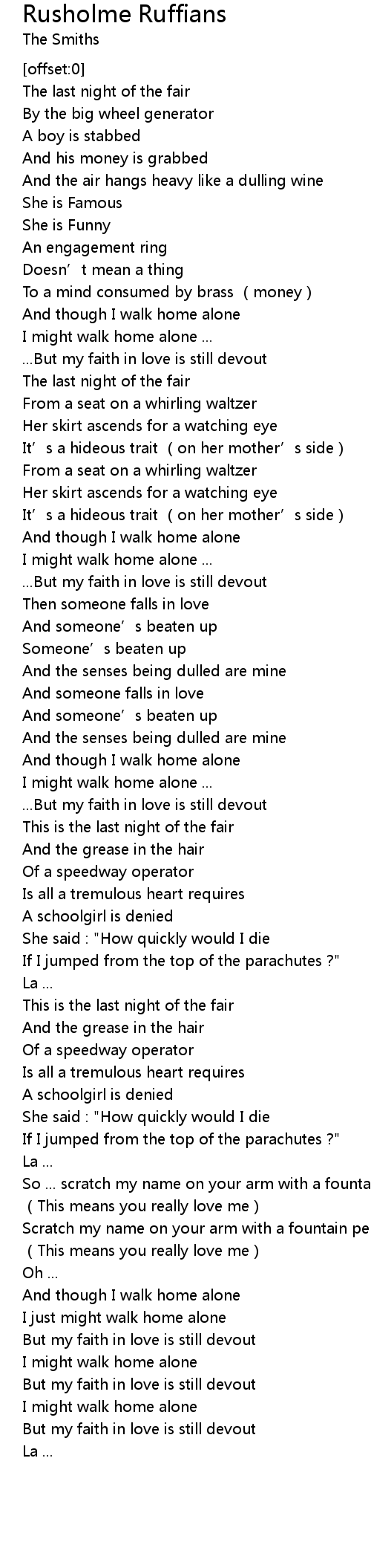 | [00:42.90] | I might walk home alone ... |