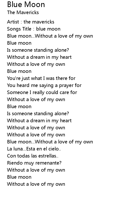 | Blue moon... Without a love of my own | |