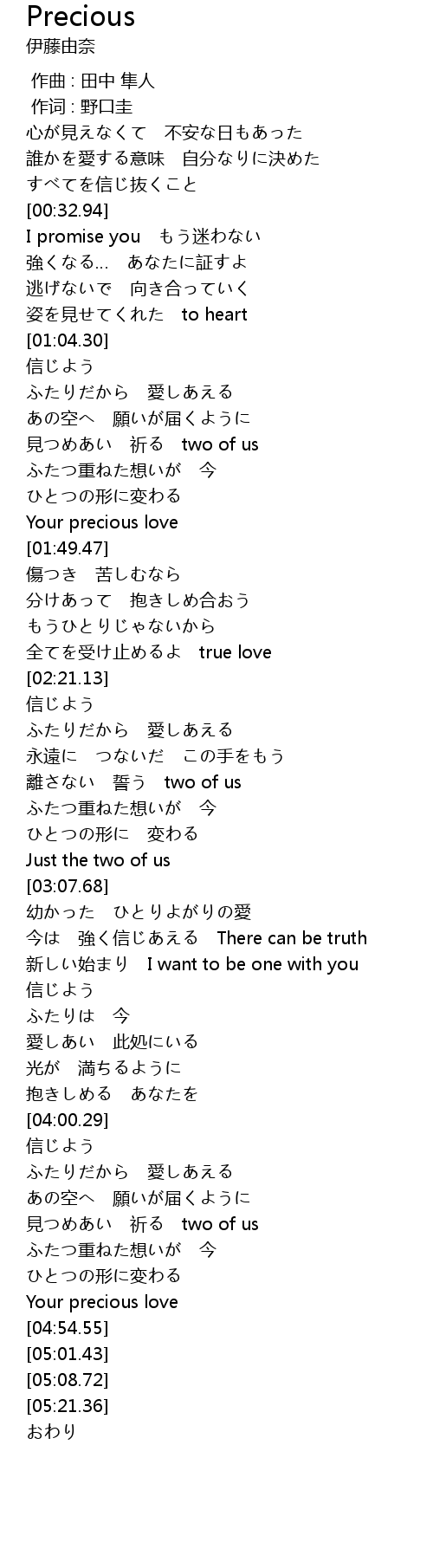 | [04:19.74] | 見つめあい 祈る two of us |