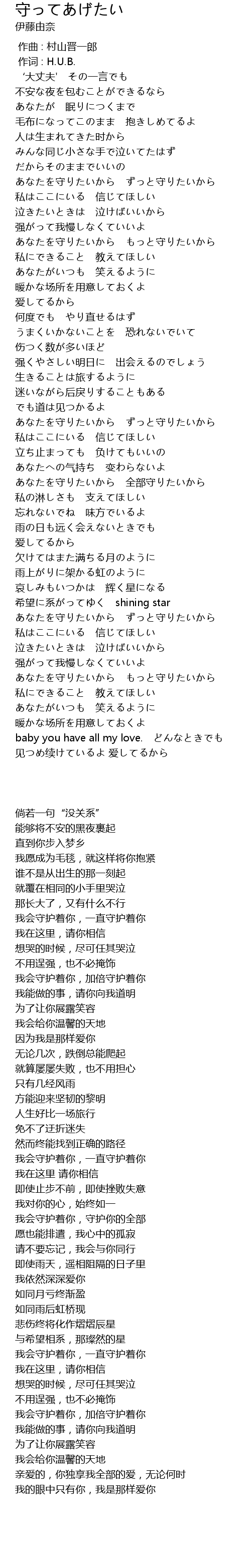 | [02:43.0] | あなたを守りたいから ずっと守りたいから |