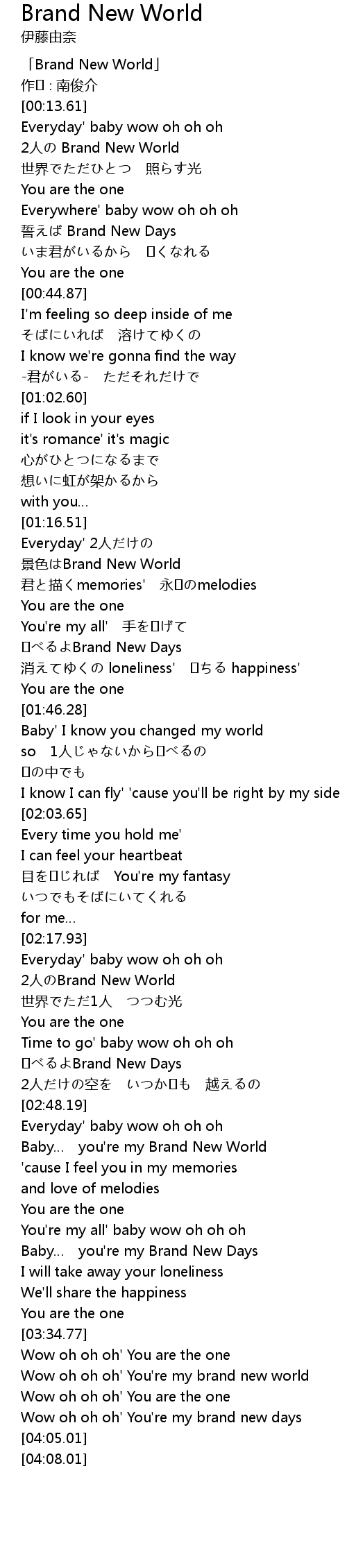 | [03:42.52] | Wow oh oh oh' You' re my brand new world |
