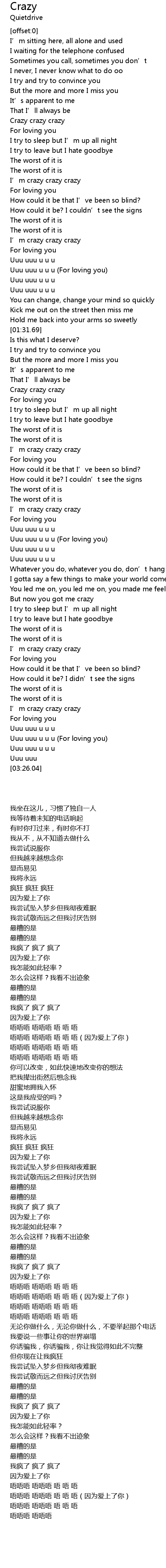 | [01:45.65] | Crazy crazy crazy |