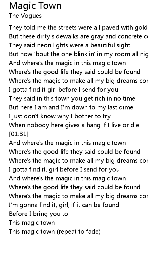 And where's the magic in this magic town |