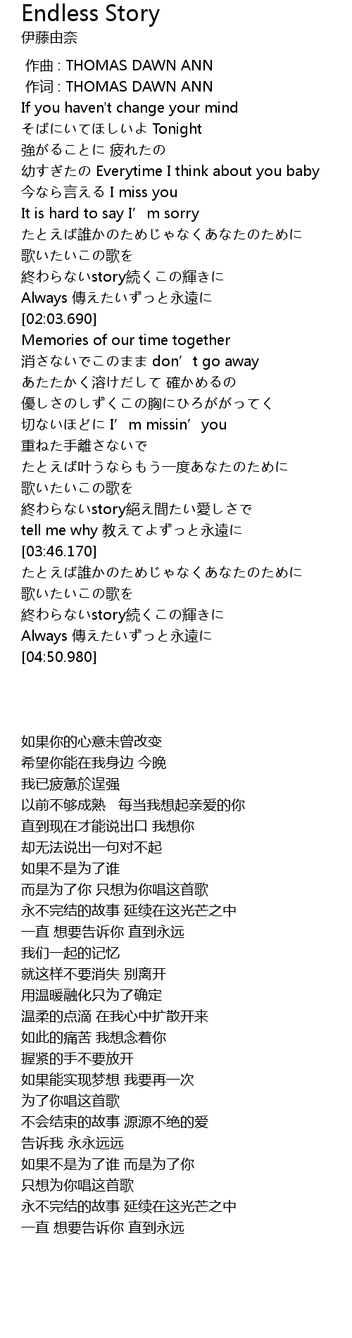 | [03:10.950] | 終わらないstory絕え間たい愛しさで |