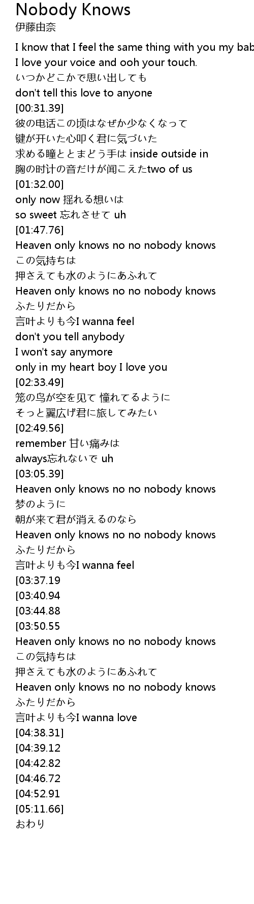 | [02:03.51] | Heaven only knows no no nobody knows |