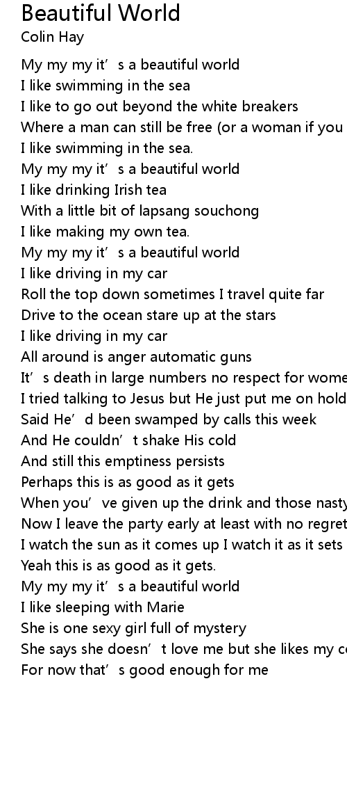 | My my my it' s a beautiful world | |