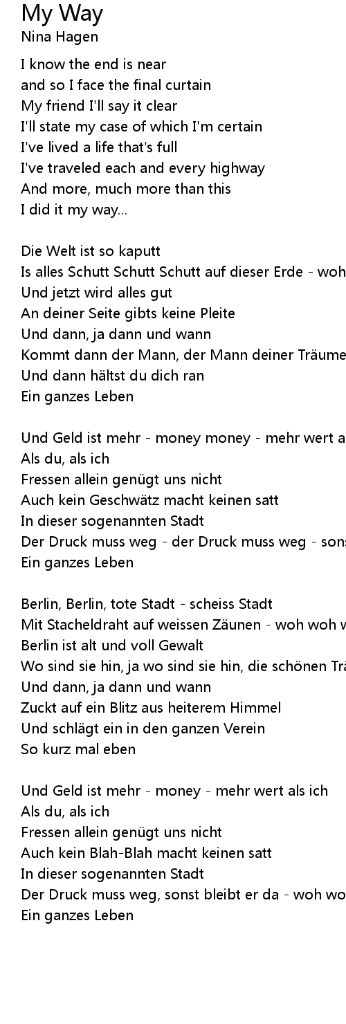 | Und Geld ist mehr - money money - mehr wert als ich | |